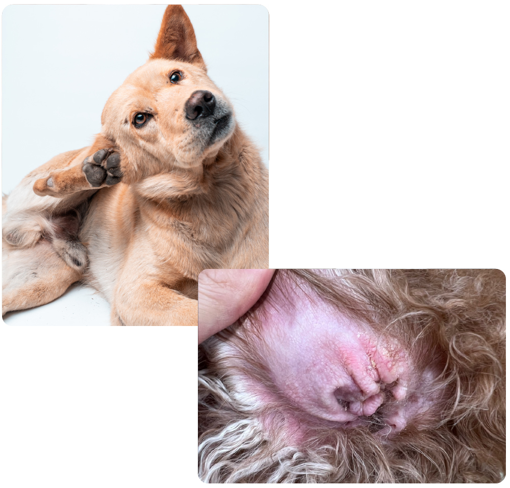 環境中のアレルゲン(ハウスダストや花粉など)が皮膚から侵入することで、免疫反応が起こり強い痒みが生じる病気です。慢性的に症状を繰り返すことが多く、長期的な管理が必要になります。